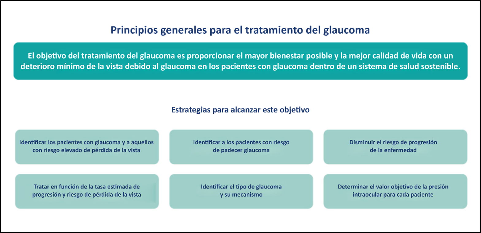 El objetivo de la Guía de la Sociedad Europea de Glaucoma (EGS) es respaldar a los oftalmólogos en el tratamiento de pacientes con glaucoma o con riesgo de glaucoma y proporcionar información útil a los médicos residentes. En la guía se hace énfasis en la atención sanitaria del paciente, su bienestar y el tratamiento óptimo personalizado. La toma de decisiones con respecto al tratamiento debe enfocarse en las necesidades y las circunstancias del paciente, siempre teniendo en cuenta los datos clínicos disponibles.